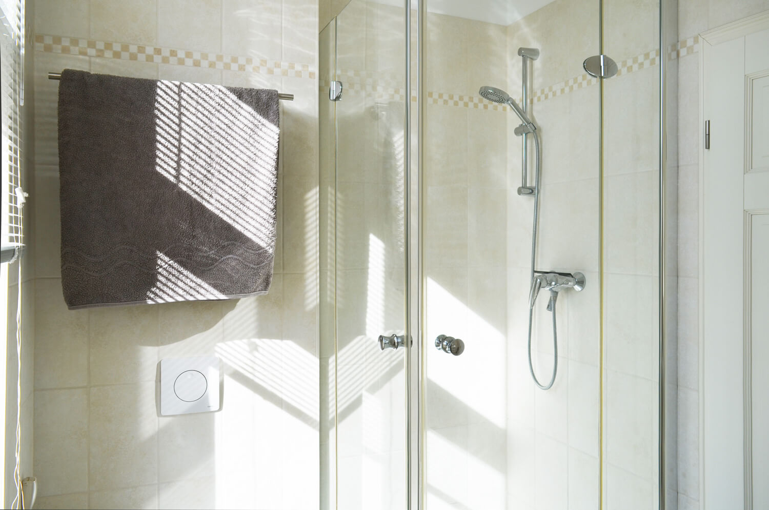 Das Bad verfügt über eine Dusche, ein Fön ist ebenfalls vorhanden. Handtücher und Bettwäsche werden einmalig zur Verfügung gestellt.
